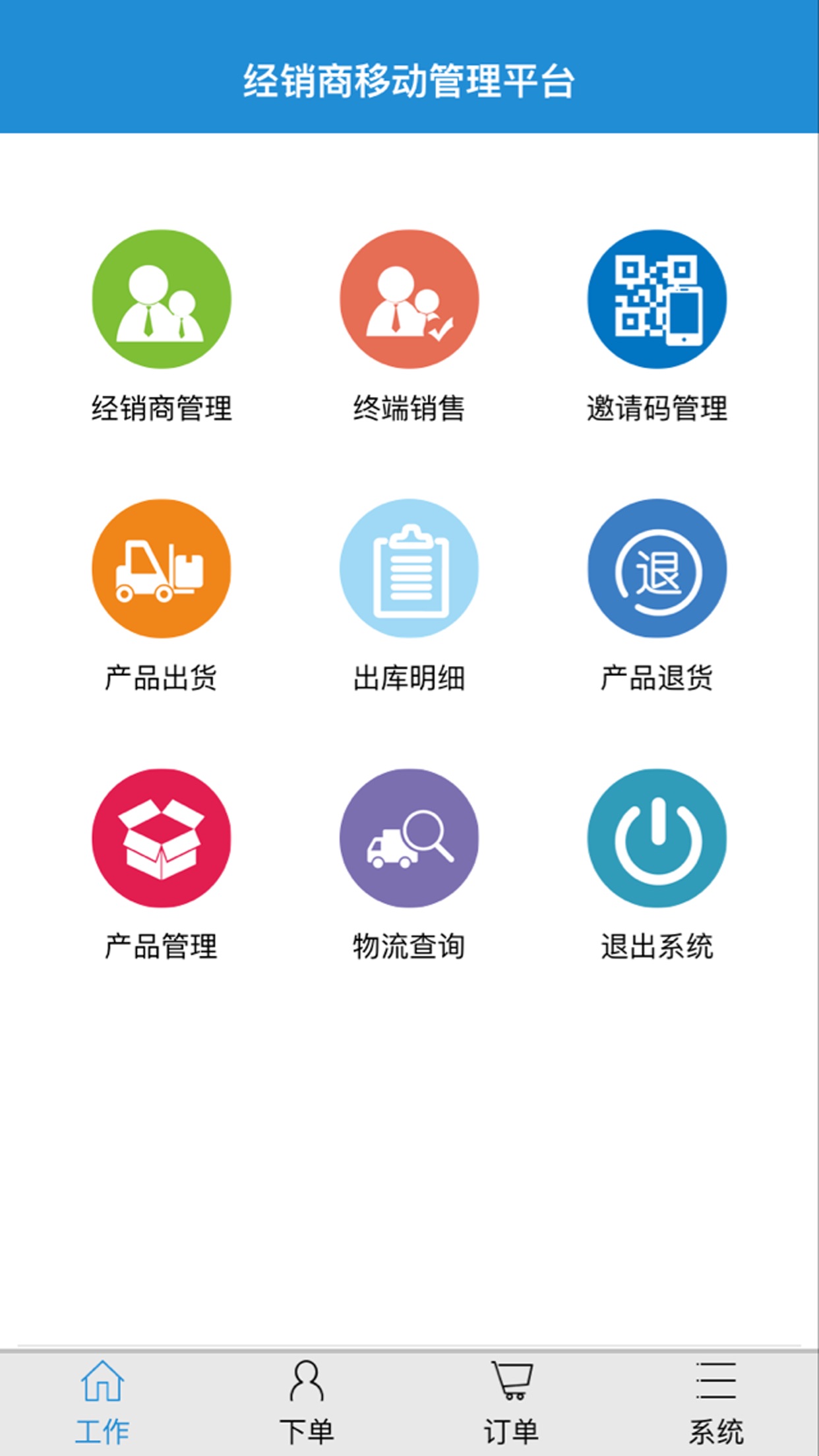 代理商通过邀请码注册成为经销商后可以在里面购买产品下单,还可以发行自己的邀请码,邀请别的代理注册成为自己的下级经销商,